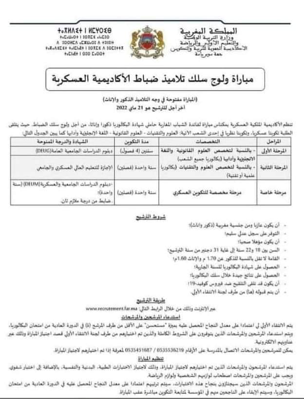 مباريات ولوج سلك تلاميذ ضباط الأكاديمية العسكرية