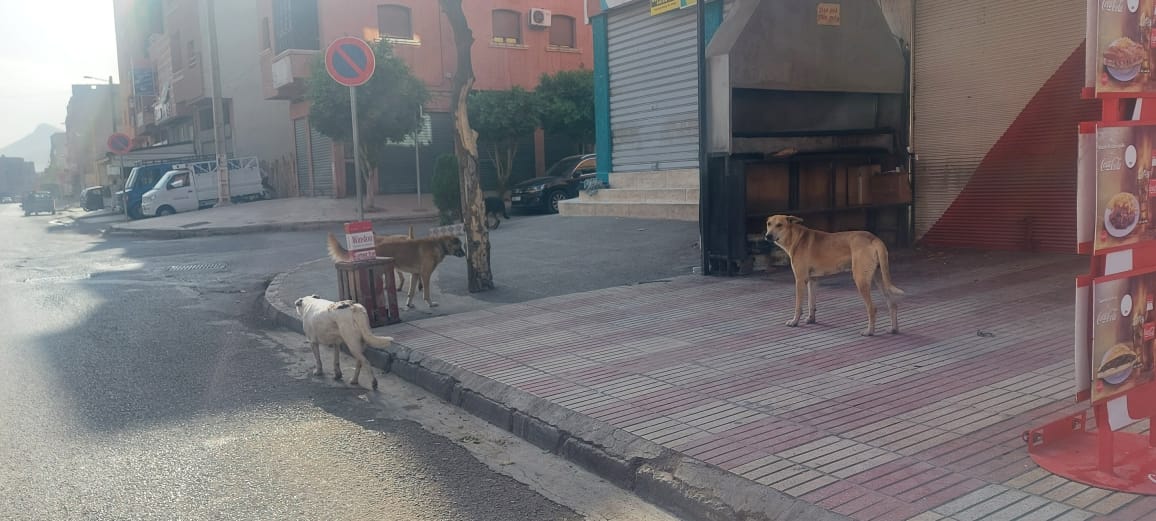 كلاب الضالة تجوب شارع المتنبي بني ملال في حرية تامة.