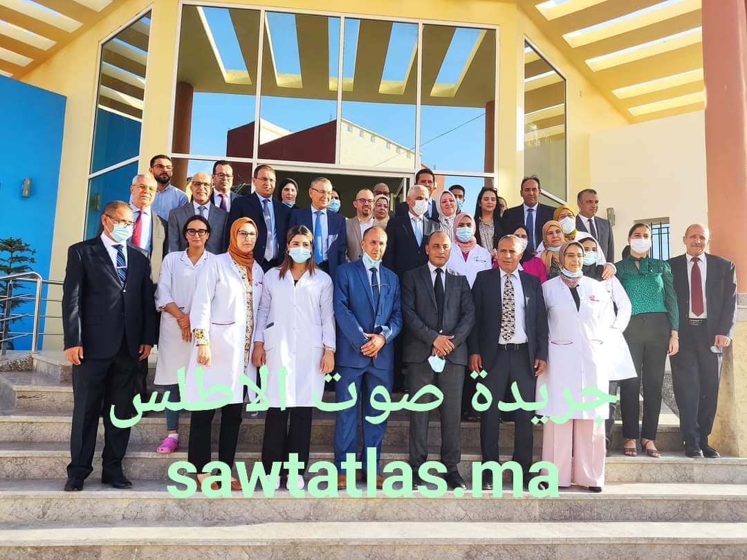 صورة جماعية للسيد وزير الصحة والسيد والي الجهة على ضوء زيارة مستوصف ارميلة بني ملال