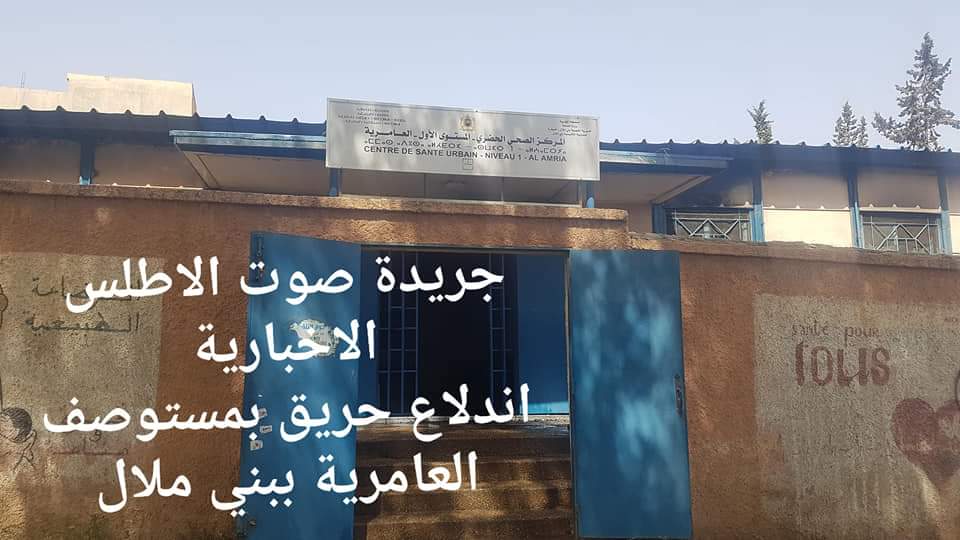 اندلع حريق داخل المستوصف العامرية 1 على الساعة الحادية عشر صباحا من يوم الخميس 9 يونيو 2022، وتعود اسباب الحريق حسب ماجاء في تصريح للمندوب الاقليمي لوزلرة الصحة ببني ملال لجريدة صوت الاطلس الاخبارية الى تواجد عمال النظافة وراء المستوصف يقومون بتنقية وتنطيف المكان من الاعشاب الضارة وهم يقومون بحرق المتلاشيات. إلا أن المفاجأة وقعت حين تسربت النار للمستوصف في غفلة من العمال مما خلف اضرارا مادية كبيرة واحسن الالطاف لم تخلف خسائر في الارواح.