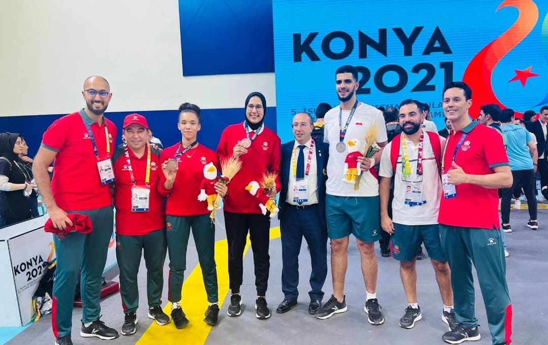 تمكن المنتخب الوطني المغربي للتايكوندو من انتزاع ثلاثة ميداليات ( فضية ونحاسيتين) جديدة خلال اليوم الرابع والأخير من مشاركته ضمن الدورة الخامسة لالعاب التضامن الإسلامي المقامة حاليا مابين 9 و 13 من شهر غشت الجاري بمدينة قونية التركية ، وذلك بعد تحقيقه اليوم لميدالية فضية بواسطة البطل أيوب الباسل ونحاسية البطلة فاطمة الزهراء ابوفارس ونحاسية البطلة مريم خولال .