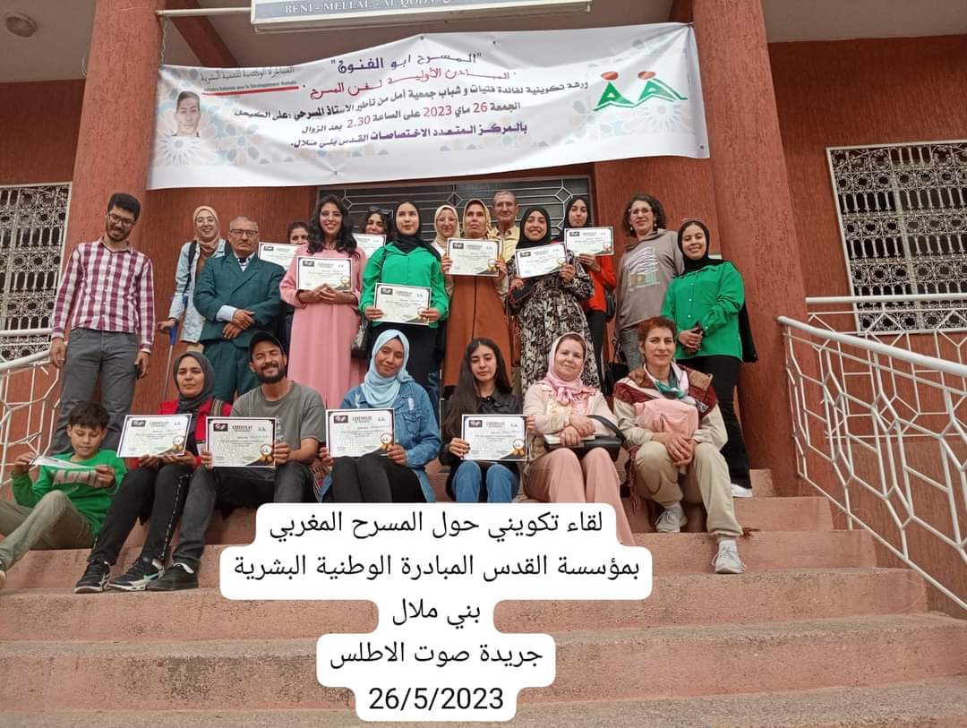 جمعية أمال لدعم الاطفال والشباب في وضعية صعبة تنظم ندوة تكوينية حول فن المسرح المغربي بالمركز المتعدد التخصصات القدس المبادرة الوطنية للتنمية البشرية بني ملال
