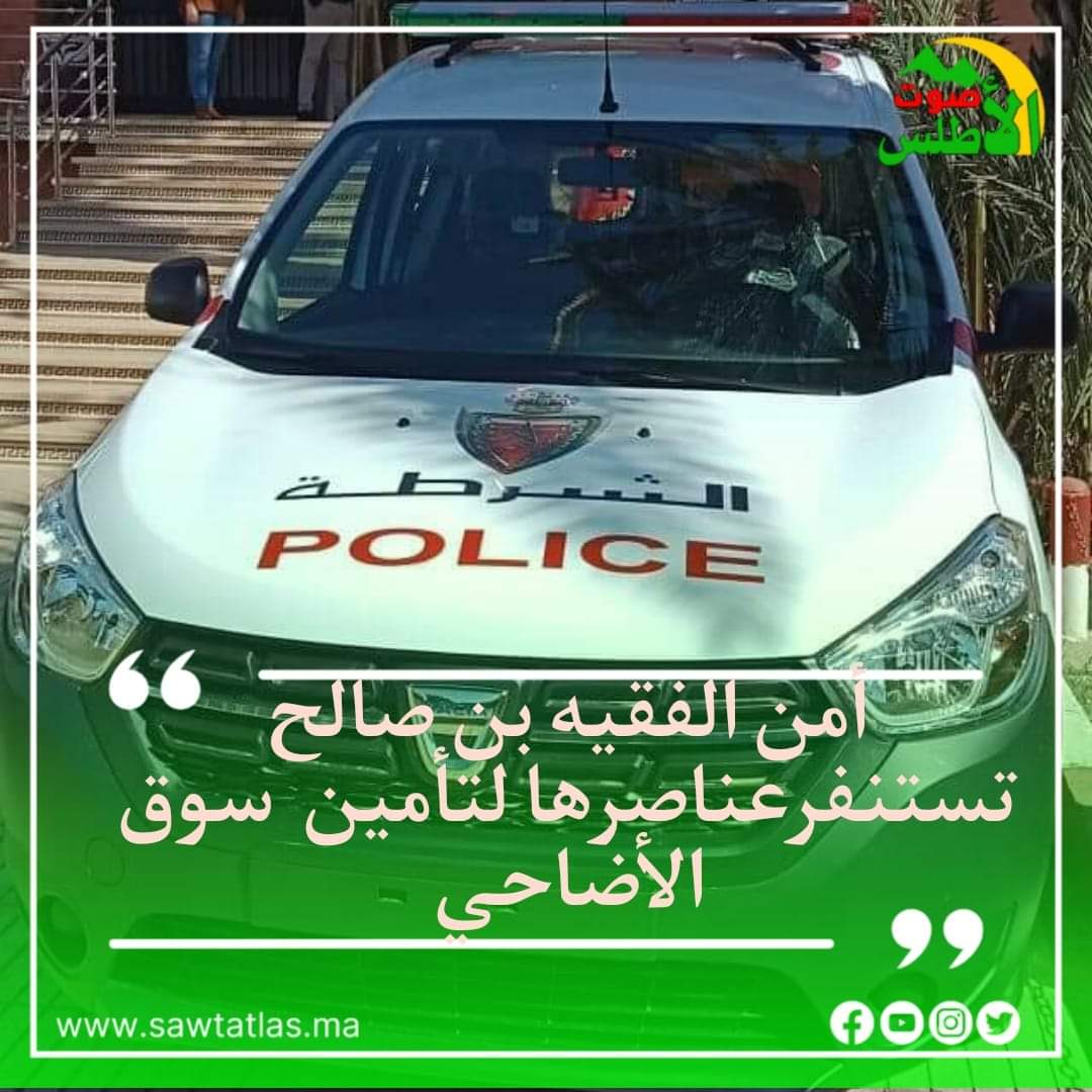 سخرت السلطات الأمنية،بتعليمات من المراقب العام، رئيس المنطقة الإقليمية لأمن الفقيه بن صالح،السيد”عبدالهادي جواد، مجموعة من عناصرها مدعومين بالسلطات المحلية، وعناصر من القوات المساعدة،وذلك لتأمين”رحبة” بيع الأضاحي في السوق الأسبوعي “أربعاء الفقيه بن صالح”منذ أسابيع، تجنبا لتكرار سيناريو الفوضى الذي حدث سنة 2020 بالدار البيضاء، إثر هجوم مواطنين على”الكسابة” وسرقة مجموعة من الأكباش.