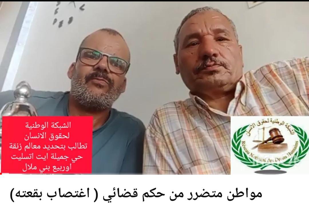 مواطن بحي جميلة ايت اتسليت اوربيع بني ملال/ متضرر من حكم قضائي( اغتصاب بقعته). جريدة صوت الاطلس/ الامين العام حسن انوار استضافت جريدة. صوت الاطلس ” المواطن محمد الحكيمي من حي جميلة ايت اتسليت اوربيع من خلال ماتعرض له من تجاهل بخصوص مطالبه حول اغتصاب بقعته” جراء قرار حكم قضائي” لفائدة خصمه الذي لا يملك ما يؤكد على امتلاكه رسم الملكية يتضمن نوافد على ملك الغير. تابعوا تفاصيل الفيديو.