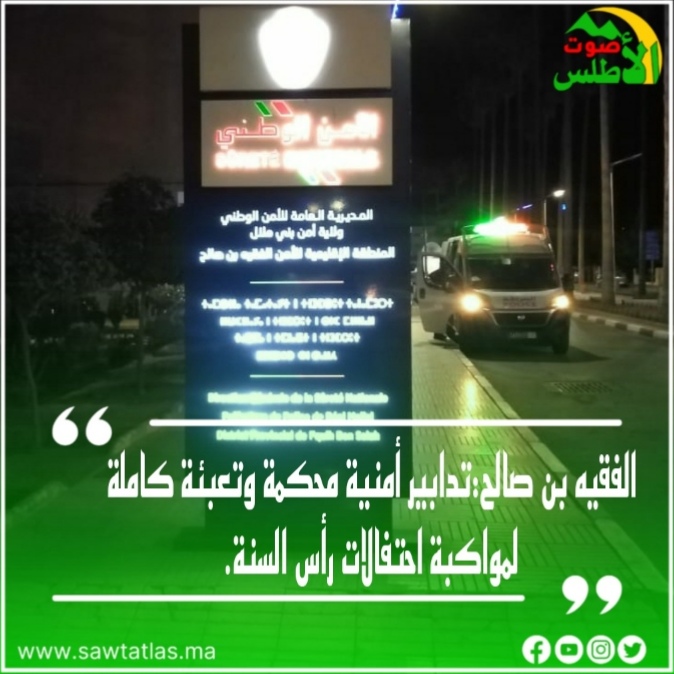 تدابير أمنيةمحكمة وتعبئة شاملة لمواكبة احتفالات رأس السنة الميلادية 2024 بمدينة الفقيه بن صالح