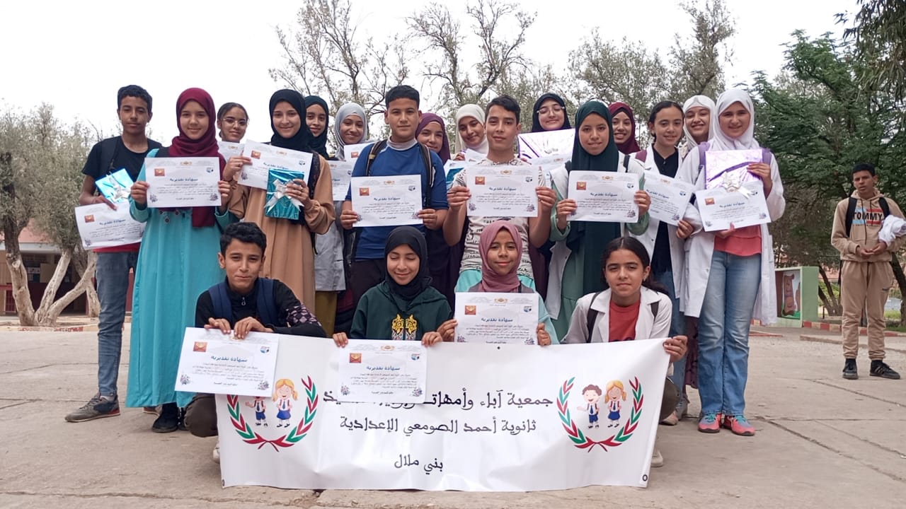 جمعية اباء وامهات واولياء تلاميدة اعدادية احمد الصومعي بني ملال وبيت الصحافة بذات الإعدادية ؛ نظمت مسابقة في تجويد القرأن الكريم الرمضانية؛ بمناسبة ليلة القدر.