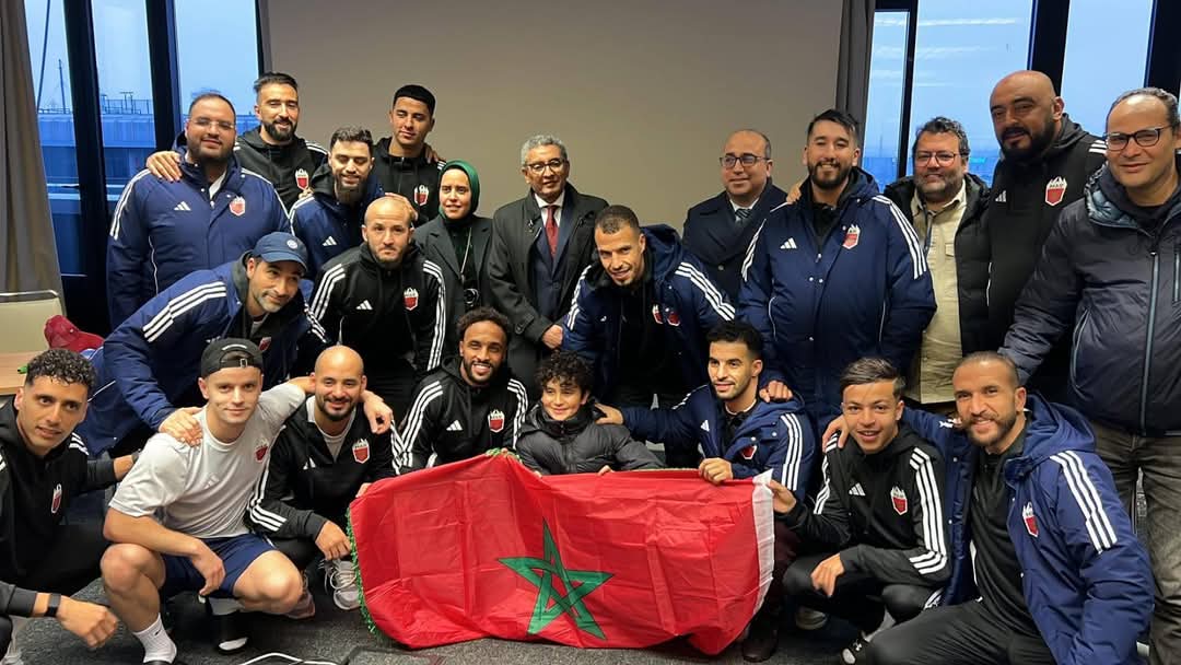 الجالية المغربية احتفلت بقدوم السيد القنصل المغربي السيد لكحل عبر تشريفه حضور مقابلة اسود الوطن لكرة القدم داخل القاعة ؛ أمام الولاية المتحدة الأمريكية .