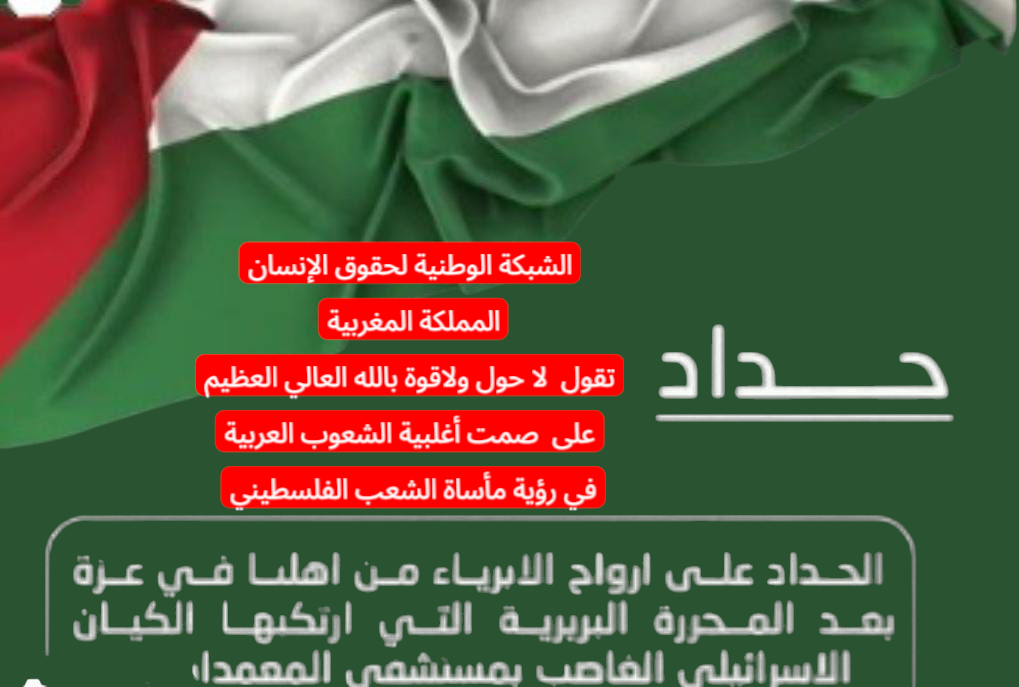 باسمنا المتواضع الأمين العام للشبكة الوطنية لحقوق الإنسان، السيد أنوار حسن، نعبر عن الغضب والاستنكار تجاه تخاذل الأنظمة العربية والدولية أمام مأساة غزة: اللهم انصر الشعب الفلسطيني واخدل من خدله يارب العالمين جريدة صوت الاطلس . بقلم ،: مدير النشر انوار حسن الهاتف 0661548867