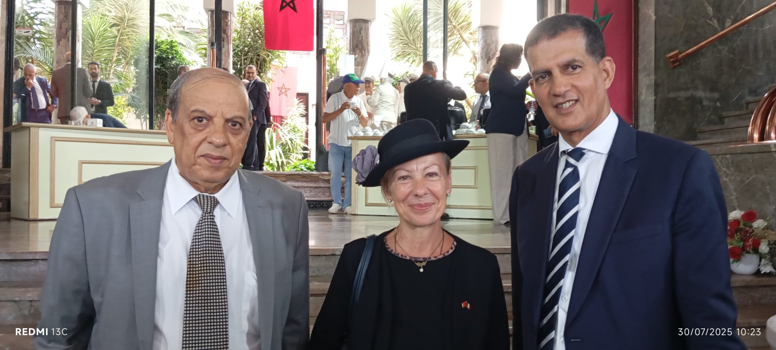 À l’occasion du 26e anniversaire de l’accession de Sa Majesté le Roi Mohammed VI, que Dieu L’assiste, au Trône de Ses glorieux ancêtres, j’ai eu l’honneur de recevoir une invitation officielle de la Wilaya de la région Casablanca-Settat pour assister à la cérémonie de levée du drapeau national et à l’écoute du discours royal, qui s’est tenue le soir du 29 juillet 2025 dans la grande salle de la wilaya, en présence d’un grand nombre de responsables et de représentants des différents secteurs vitaux de la région. Ce moment solennel de haute portée nationale a profondément marqué mon esprit et mon cœur. Il a incarné l’unité sincère entre le Trône et le peuple, et reflété une vision royale éclairée en faveur de la justice sociale, du développement équilibré, et de la place du Maroc en tant que phare parmi les nations. En marge de cette cérémonie exceptionnelle, j’ai eu le plaisir de rencontrer Maître Abdeljalil Skalli, avocat au barreau de Lille en France, avec qui j’ai eu un échange fructueux sur les questions relatives à la communauté Marocaine résidant à l’étranger et les défis qu’elle rencontre. Il m’a exprimé, avec beaucoup de patriotisme, sa volonté constante de servir tout Marocain vivant en France, fidèle à la devise : Dieu, la Patrie, le Roi. Ce fut également l’occasion d’un échange avec Madame Pascale TRIMBACH, Consule générale de France à Casablanca, qui a manifesté un grand intérêt pour les actions humanitaires et culturelles menées par l’Association de Solidarité Euro-marocaine – Paris, que j’ai l’honneur de présider. Madame la Consule a exprimé le souhait de nous recevoir au siège du consulat et de recevoir un exemplaire de mon livre intitulé “Migration et Patrie”, qui relate l’expérience des Marocains du monde et leurs valeurs communes. Ces moments sincères et patriotiques resteront gravés dans ma mémoire. Ils traduisent la conviction que servir la nation commence par la fierté de l’identité, se nourrit de l’espoir et du travail, et s’oriente vers la contribution à un avenir prometteur pour notre cher pays. Vive la patrie, et honte à ceux qui la trahissent. Vive le Roi, et honte à ceux qui trahissent le serment.