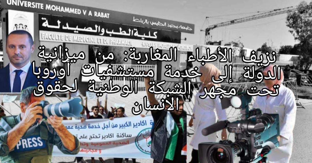 باسم الشبكة الوطنية لحقوق الإنسان، نسلّط الضوء على عمق الإشكاليات التي تكرّس أزمة الصحة بالمغرب، ونركّز على هجرة الأطباء وما يترتب عنها من تبديد للميزانية العمومية: نزيف الأطباء المغاربة: من ميزانية الدولة إلى خدمة مستشفيات أوروبا تحت مجهر الشبكة الوطنية لحقوق الانسان نزيف الأطباء المغاربة: خسارة مزدوجة للوطن بين التكوين والهجرة جريدة صوت الاطلس بقلم مدير النشر انوار حسن الهاتف 0661548867