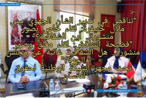 “تناقض في تدبير الشأن الجهوي ببني ملال خنيفرة: لقاء خاص بصور منشورة.. أين الشفافية؟” “فضيحة التناقض: لقاء مغلق وصور منشورة.. هل الشفافية غائبة عن مجلس الجهة؟” تحت مجهر الشبكة الوطنية لحقوق الانسان.