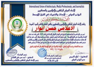 رسالة شكر وتقدير واعتزاز إلى رئاسة وإدارة الاتحاد الدولي للمثقفين والإعلاميين والصحافيين الدوليين