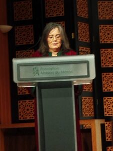 Madame la Consule générale a ouvert les allocutions en présentant les points saillants du Discours Royal et les acquis honorables réalisés par le Maroc sur la scène internationale, notamment au sein du Conseil de sécurité des Nations Unies, renforçant ainsi le positionnement et le rôle pionnier du Royaume.