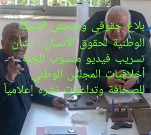 الرئيسية / اخبار وطنية / بلاغ حقوقي وصحفي الشبكة الوطنية لحقوق الانسان ؛ بشأن تسريب فيديو منسوب للجنة أخلاقيات المجلس الوطني للصحافة وتداعيات نشره إعلامياً