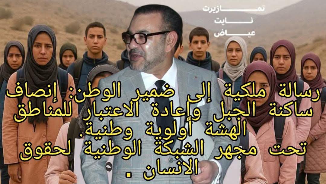رسالة ملكية إلى ضمير الوطن: إنصاف ساكنة الجبل وإعادة الاعتبار للمناطق الهشة أولوية وطنية. تحت مجهر الشبكة الوطنية لحقوق الانسان . —