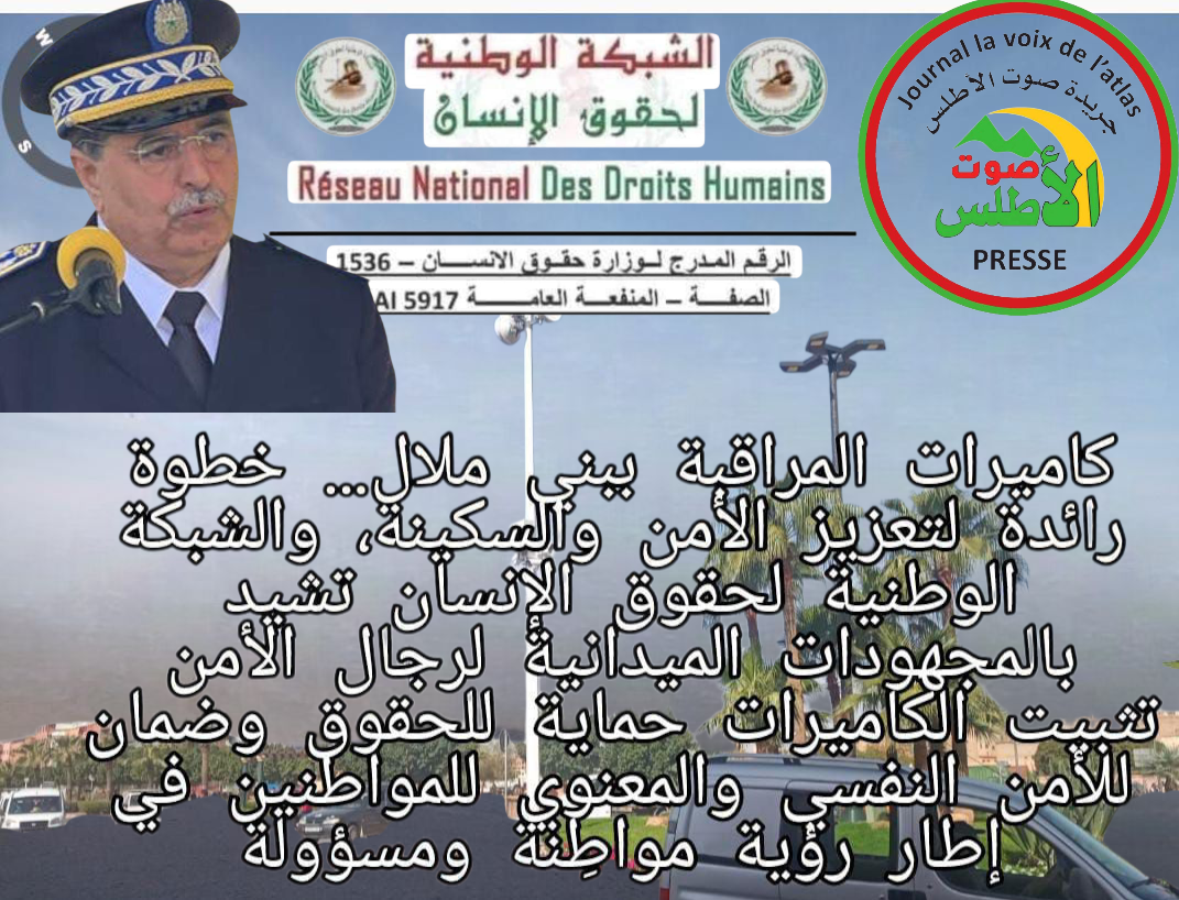 الشبكة الوطنية لحقوق الإنسان وجريدة صوت الأطلس تشيدان بمبادرة تثبيت كاميرات المراقبة ببني ملال كاميرات المراقبة ببني ملال… خطوة رائدة…