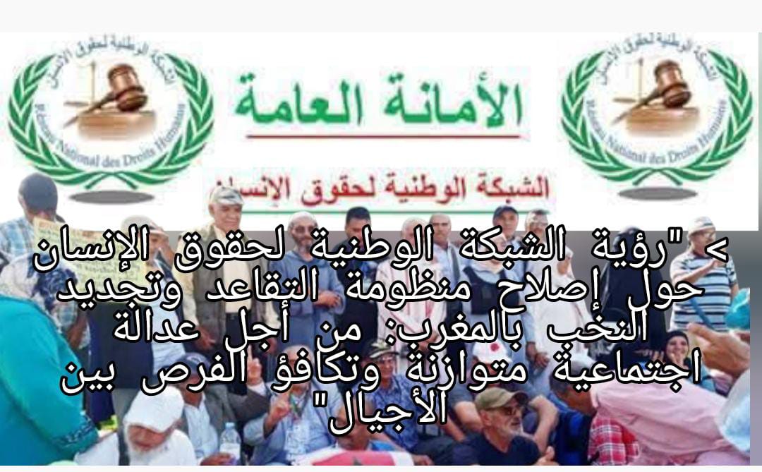 > “رؤية الشبكة الوطنية لحقوق الإنسان حول إصلاح منظومة التقاعد وتجديد النخب بالمغرب: من أجل عدالة اجتماعية متوازنة وتكافؤ الفرص بين الأجيال”