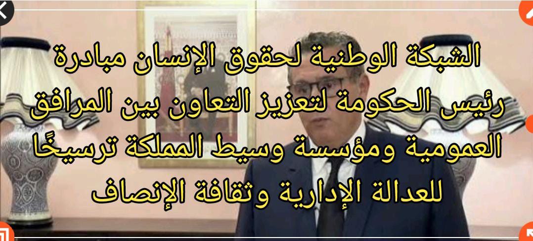 الشبكة الوطنية لحقوق الإنسان مبادرة رئيس الحكومة لتعزيز التعاون بين المرافق العمومية ومؤسسة وسيط المملكة ترسيخًا للعدالة الإدارية وثقافة الإنصاف…