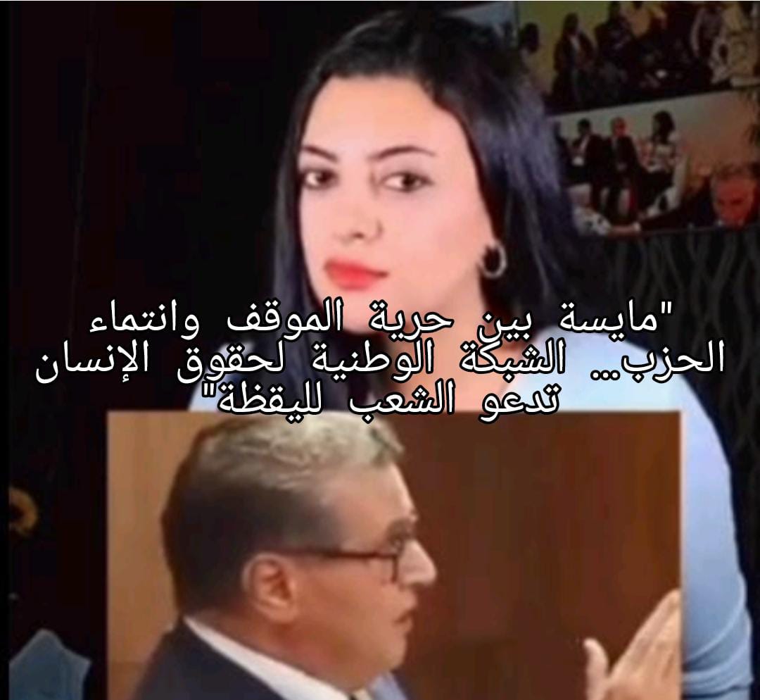 “مايسة بين حرية الموقف وانتماء الحزب… الشبكة الوطنية لحقوق الإنسان تدعو الشعب لليقظة”