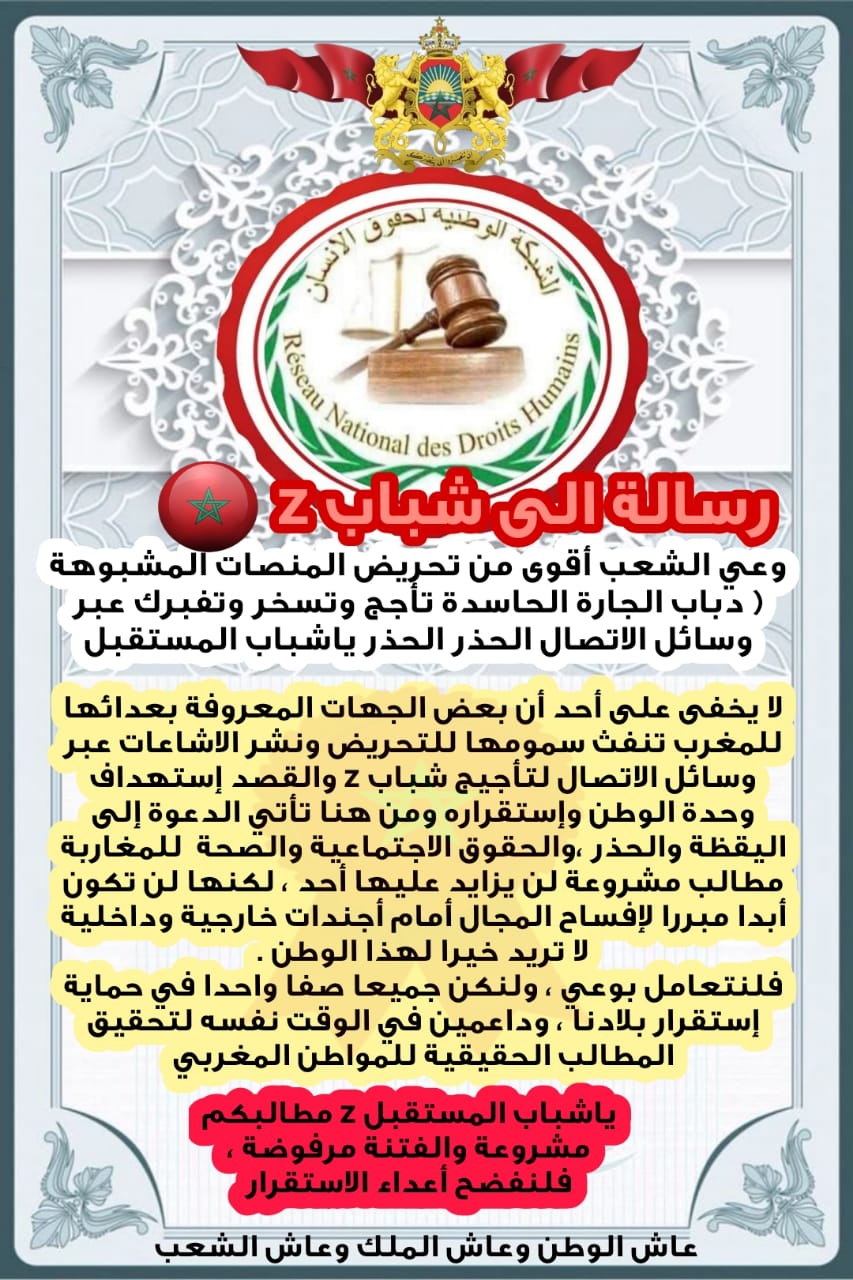 “الشبكة الوطنية لحقوق الإنسان: الفتنة مخطط خارجي والفشل مسؤولية حكومية – والمغرب يحتاج إلى قرارات جريئة بقيادة جلالة الملك”