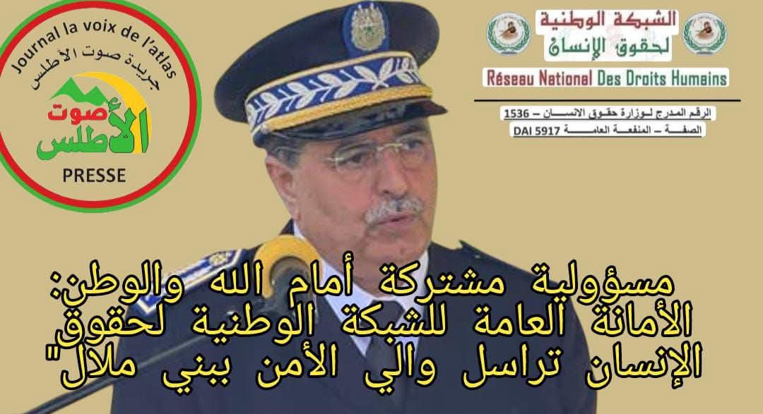 —- مسؤولية مشتركة أمام الله والوطن: الأمانة العامة للشبكة الوطنية لحقوق الإنسان تراسل والي الأمن ببني ملال”