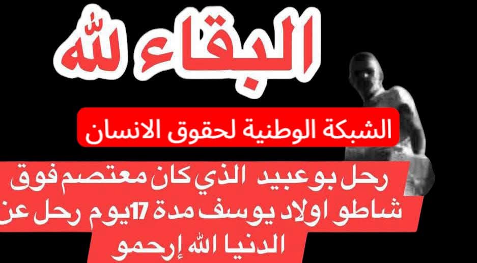 الشبكة الوطنية لحقوق الإنسان :تعزية في وفاة بوعبيد فلسطين وطلب المسامحة له من عنصر الوقاية المدنية له