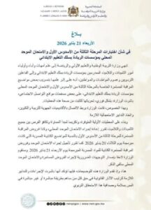 وتأتي هذه الخطوة، حسب الوزارة، لضمان تكافؤ الفرص بين جميع التلاميذ وصون مصداقية العملية التربوية، مع التشديد على مواصلة الجهود لحماية نزاهة الامتحانات والارتقاء بجودة التعليم.