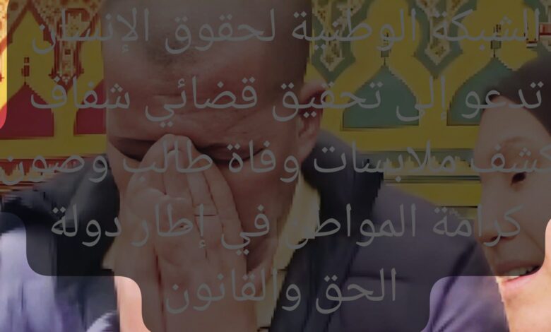الشبكة الوطنية لحقوق الإنسان تدعو إلى تحقيق قضائي شفاف لكشف ملابسات وفاة طالب وصون كرامة المواطن في إطار دولة الحق والقانون