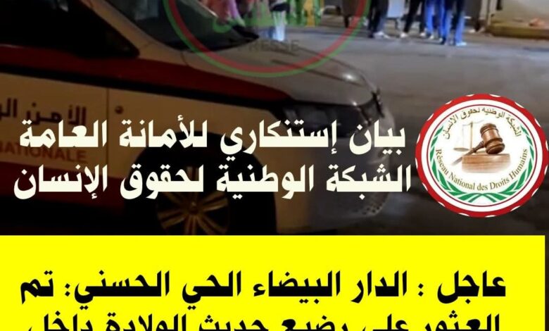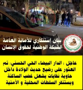 تعرب الأمانة العامة للشبكة الوطنية لحقوق الإنسان عن استنكارها الشديد للواقعة المأساوية التي شهدتها منطقة الحي الحسني بالدار البيضاء، حيث تم العثور على رضيع حديث الولادة داخل حاوية نفايات.