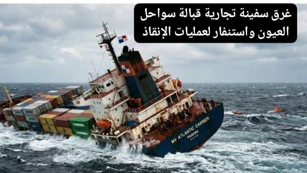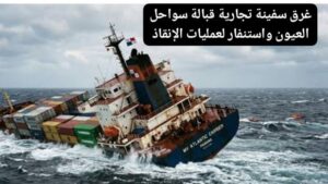 غرق سفينة تجارية قبالة سواحل العيون واستنفار لعمليات الإنقاذ.