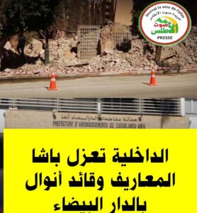 أفادت معطيات متطابقة أن مصالح وزارة الداخلية أقدمت على اتخاذ قرار يقضي بإعفاء كل من باشا الدائرة الحضرية للمعاريف وقائد قيادة أنوال بمدينة الدار البيضاء، وذلك على خلفية قضية هدم فيلا مصنفة ضمن التراث التاريخي بحي المستشفيات.