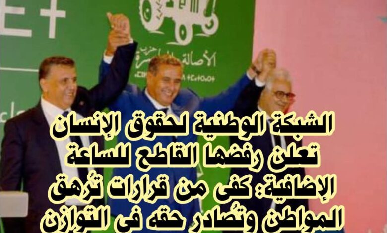 الشبكة الوطنية لحقوق الإنسان تعلن رفضها القاطع للساعة الإضافية: كفى من قرارات تُرهق المواطن وتُصادر حقه في التوازن النفسي والاجتماعي