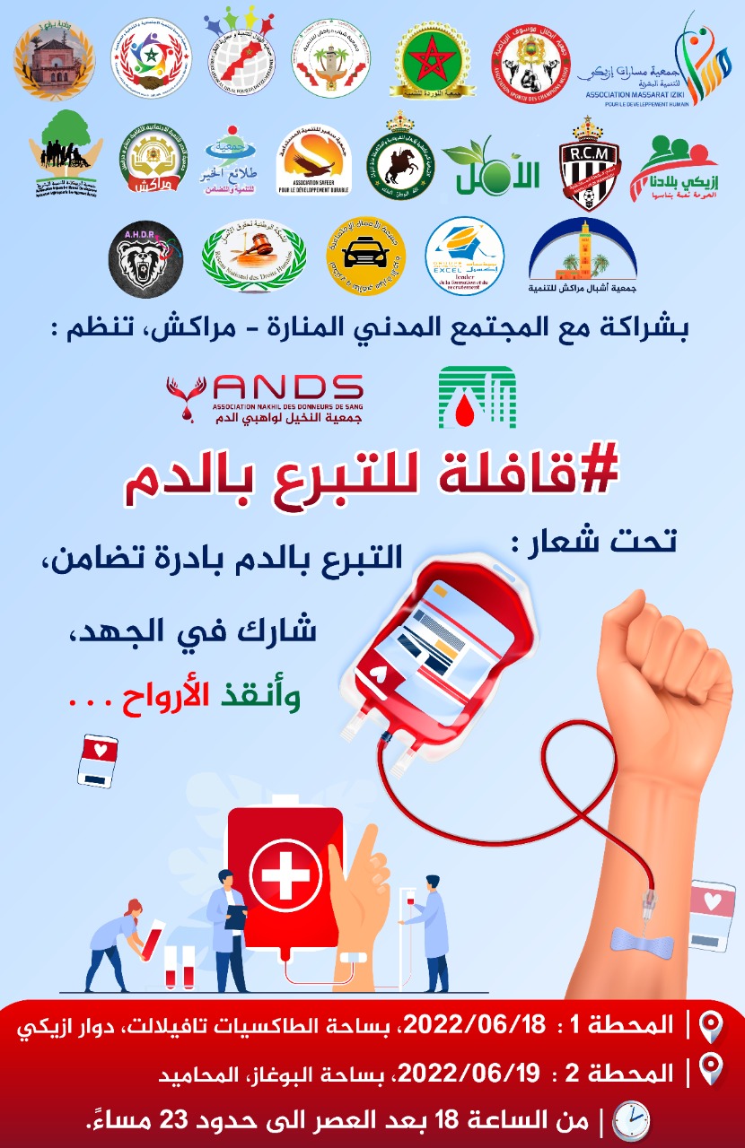 الامانة العامة للشبكة الوطنية لحقوق الانسان بمعية جمعيات المجتمع المدني بمدينة مراكش تتبرع بالدم لفائدة مستشفيات المدينة.