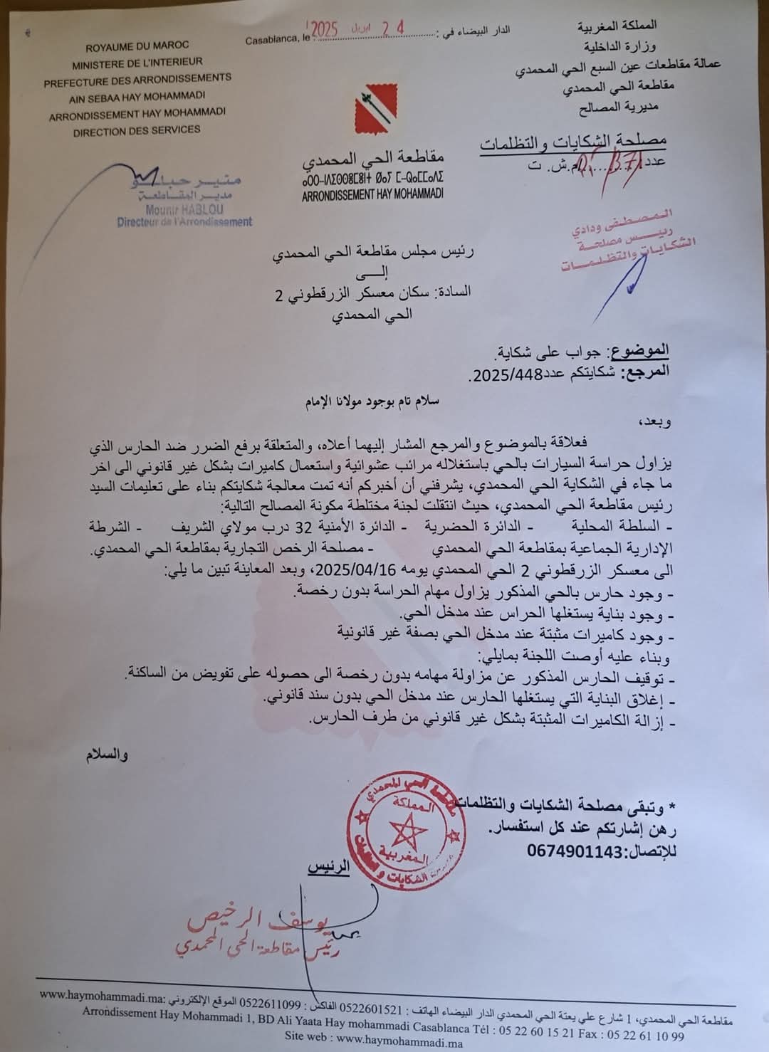 ساكنة معسكر الزرقطوني 2 الحي المحمدي الدار البيضاء تنتطر تنفيد قرار السلطة المحلية بخصوص الحارس الليلي