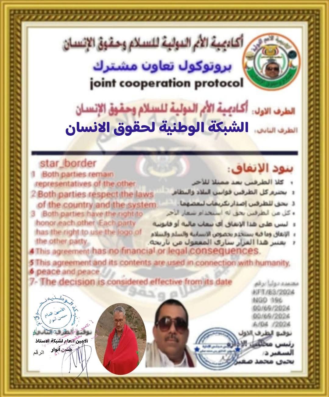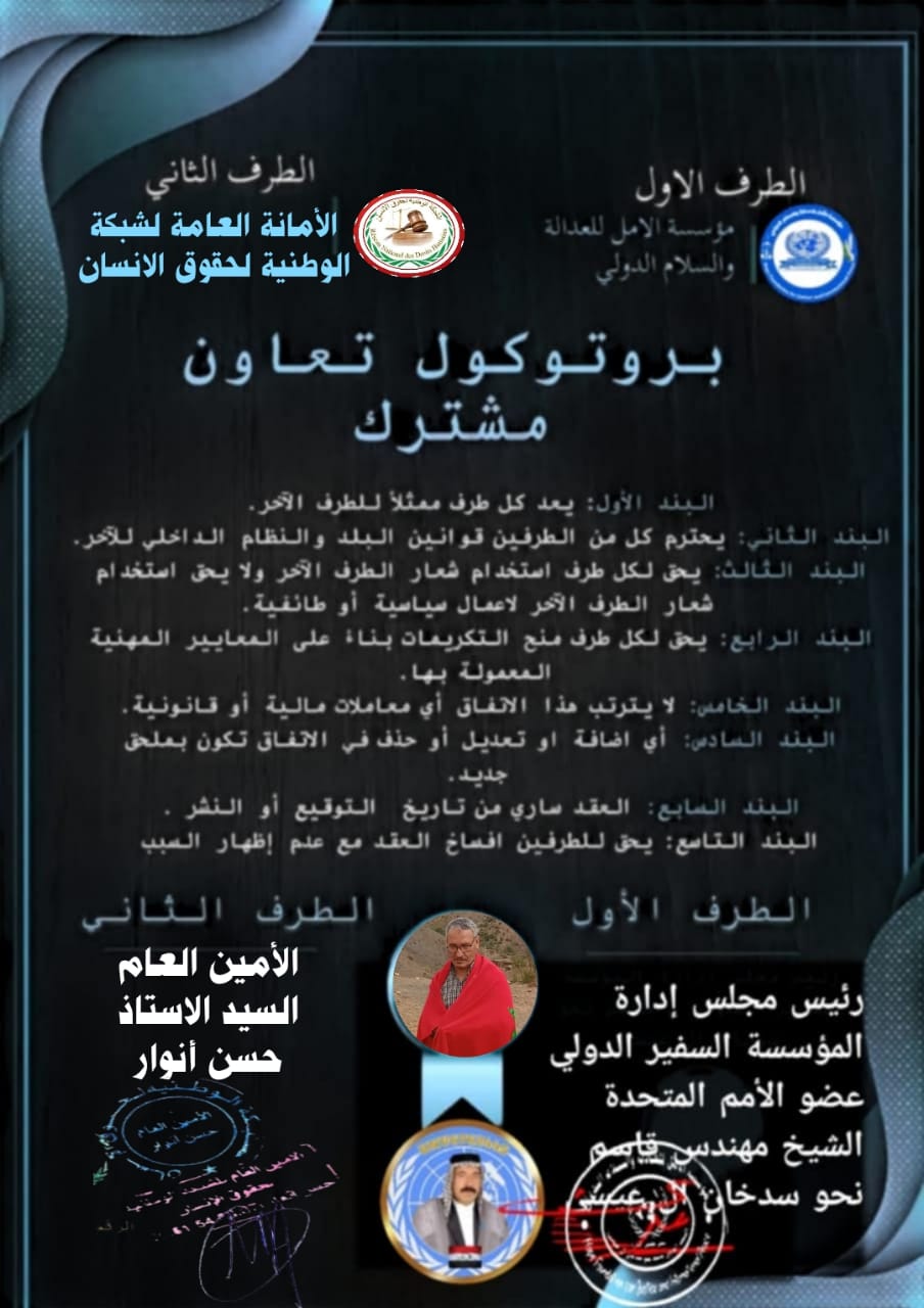 شكرا وامتنان واحترام وتقدير الى كافة الجمعيات المدنية والعربية على تقديمها للشواهد التقديرية باسم الشبكة الوطنية لحقوق الانسان الممثل في الامين العام انوار حسن