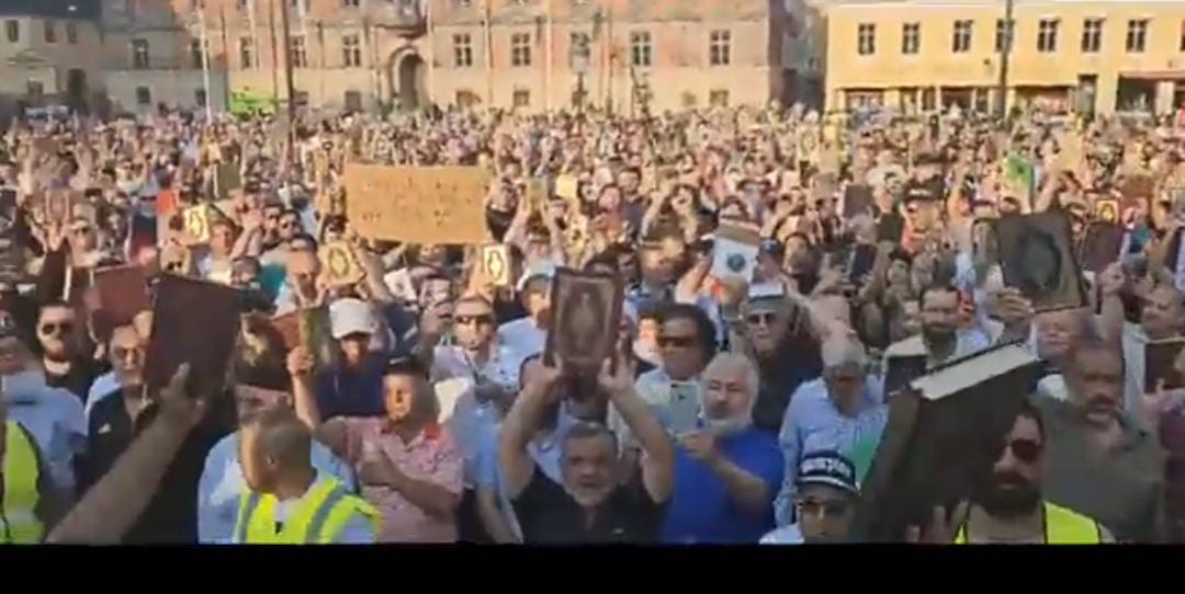 مشهد يبهج قلب كل مسلم.ارتفاع الآلاف المصاحف في سماء دولة السويد