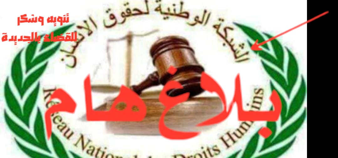 بلاغ باسم الامين العام الشبكة الوطنية لحقوق الانسان( تنويه وشكر للنيابة العامة استنافية وابتدائية بالجديدة )