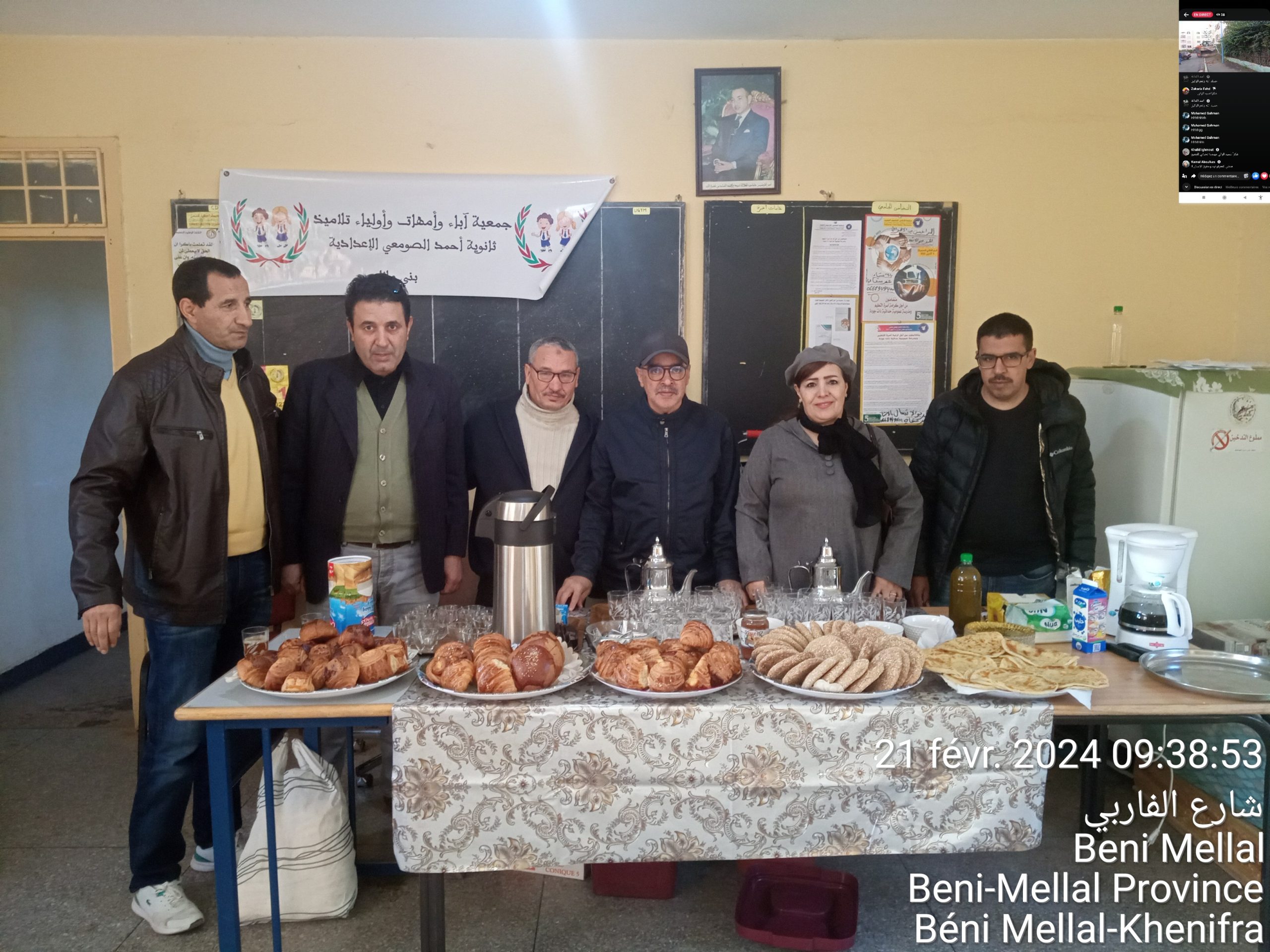 جمعية اباء وأمهات وأولياء تلاميدة اعدادية تانوية احمد الصومعي بني ملال ” تقوم بعملية تهيئة وجبات الفطور صباحا وأتناء المساء وجبة شاي.بمناسبة الامتحان المحلي الموحد السنة التالثة اعدادية على امتداد يوم التلاتاء والأربعاء والخميس .